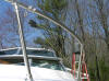 Big Boards vs. Little Boards aka the "Birds" One of the best things about fishing is: the loads of choices to achieve the same goal. Don't get bogged down with way too much info that clouds the simple task of catching fish. Over thinking is cured by hands-on fishing with no preconceived notions. Both kinds of boards have their advantages. Little boards, no matter what the brand are usually called, birds. This comes from the first successful inline, side-planer the, Yellow Bird. Birds might be a little quicker to set and provide a positive hookup. Here's where tradeoffs come in, because retrieving the smaller inline takes longer. Not to mention, you either remove bird from the line by hand, or have it trip and flop around ...on the line while you're fighting a fish. With big boards, you go direct drive to the fish with no awkward chunk of plastic to contend with. With the larger planer boards hook-sets tend not to be as positive, but tolerable if you pay careful attention to keeping your hooks ultra razor sharp. There's a lot of give in the tag line that tows the board. This does not provide a hard point for a line release. Once again meaning, ultra sticky-sharp hooks. So, never lazy-up to the first contact point with Mr. Fish. One thing that's annoying to with large board systems is the vaulted mast you see riding on many boats. This is fine, if you're in a small boat with no other alternatives. But larger boats with a walk/bow rail, need no such thing. I don't want to stare cross-eyed at a pole all day long stuck on the bow. Here's a link to a You Tube video showing how to use your bow-rail, to run a super slick system from gone, but not forgotten, savvy Ludington, MI's Capt. Jerry Lee shared with me on Lk. Erie during later 1980s. Back then we both chartered on Lk. Erie for Walleyes during June. Click for Tube remote planer board system