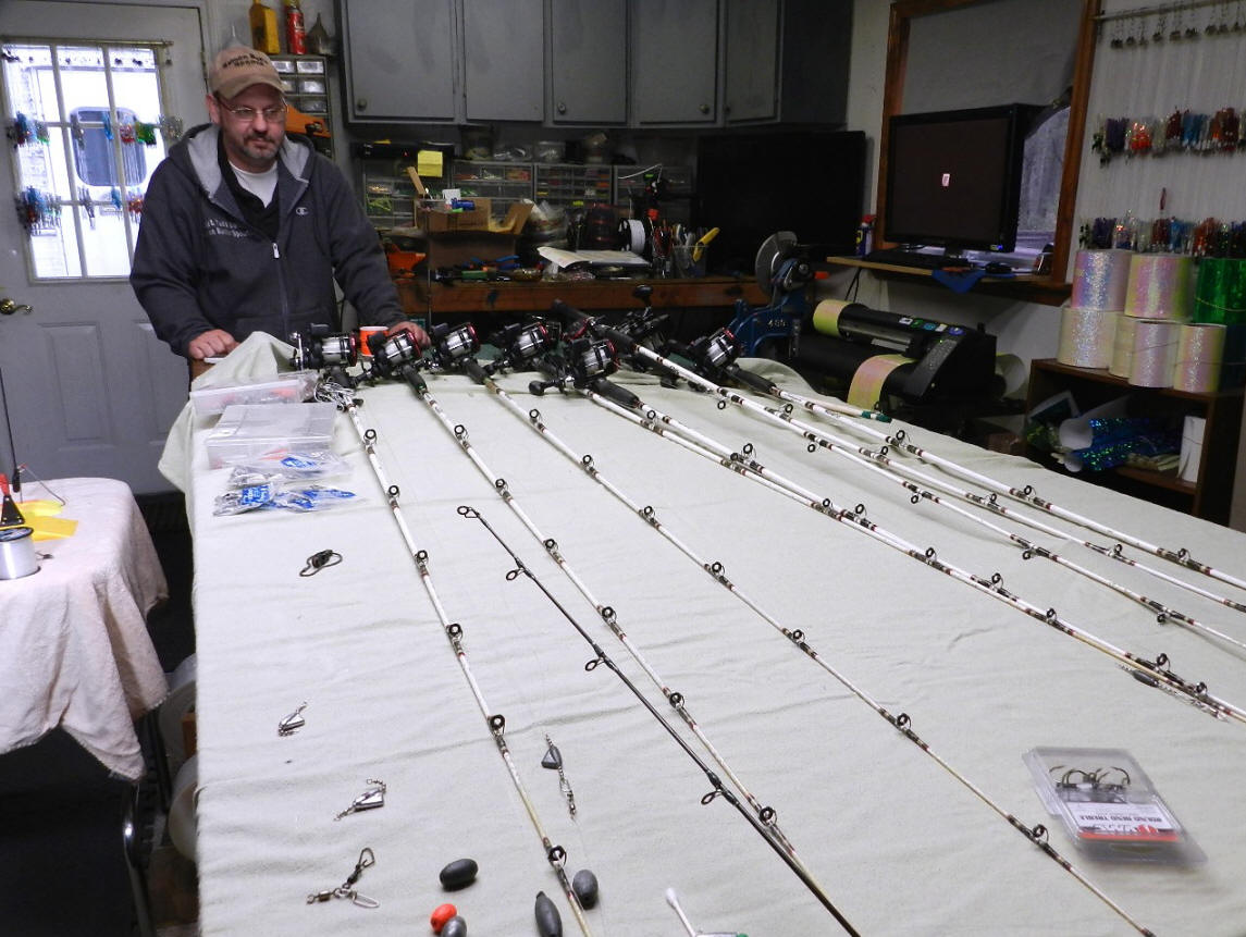 When you're sending out invitations to a fish party, you hope your scaly guests show up on time. Having line counter reels makes the job a lot easier and more precise. There's many ways to rig rods for surface trolling. Widest variance is the differing types weights that are usually on about 5' leader up from the spoon. Weight is required to pull any spoon down. This is double true on a calm day when your fishing line is dry. Even metal spoons will not break the water's surface tension on a flat day. Hence, they ride on the surface like a dead stick. Having pre-made