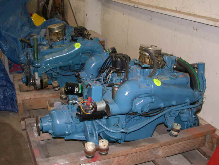 I re-powered this boat before the 2003 season with re-manufactured motors from Pro Power Marine.  I had a problem with their re-mans.  So, I had the original motors re-built by "Manistee Mike W" who specializes in small block GMs in 2004.  Mike has his own complete machine shop at his house and has been rebuilding these motors since the 1970s.  He's top-notch and well respected for his skills.  The new parts installed were fuel lines, exhaust hoses, starters, fuel pumps, water pumps, cams, pistons, rings, valves, etc.  At the present time these brand new motors have been test run to set the timing and have less then 10 minutes on them! The new motors are being installed this week.