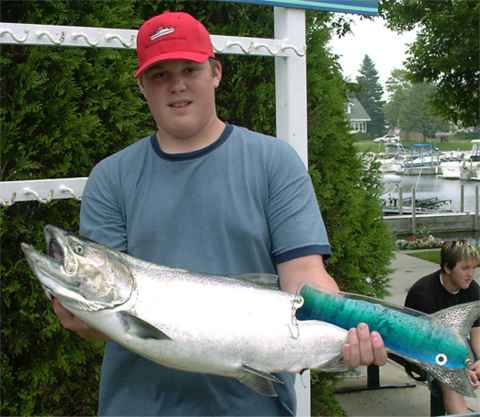 before I updated the website this last evening. Manistee still has pretty decent fishing for Kings in the deeper waters off the shelf. Look to 250 to 400 feet to find the Salmon. I heard from a boat that fished 4 hours for 12 Kings on 6/3/04.