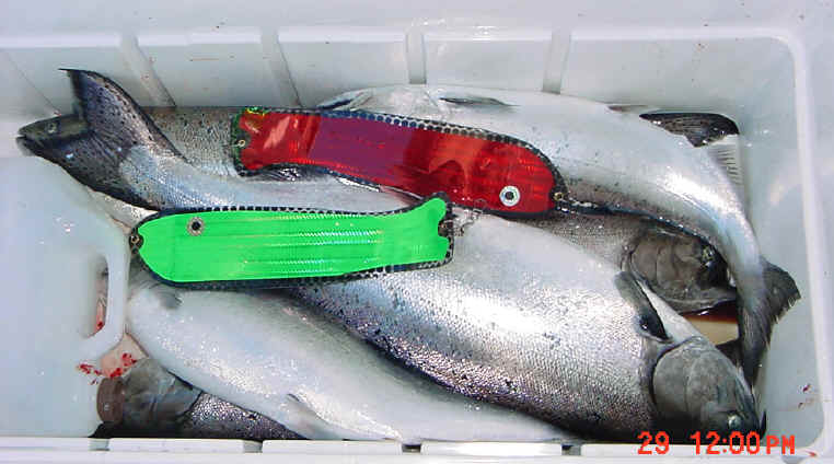 sudden" surprise storms. 12/1/04 In the spirit of the Christmas season I'm offering a special gift (good thru 12/24/04. If you buy 6 flashers, the 7th one is free and on me. The free flasher is a special new secret color for 2005 and will not be displayed, or shown until the show season of 2005. Just order your favorite 6 and I'll gladly enclose your free 2005 model flasher. If you'd like to take advantage of this money saving "Lucky Seven" offer, you can order at www.michiganangler.com. Please do not even ask what the special new secret color is, because if I told you...it wouldn't be a secret!