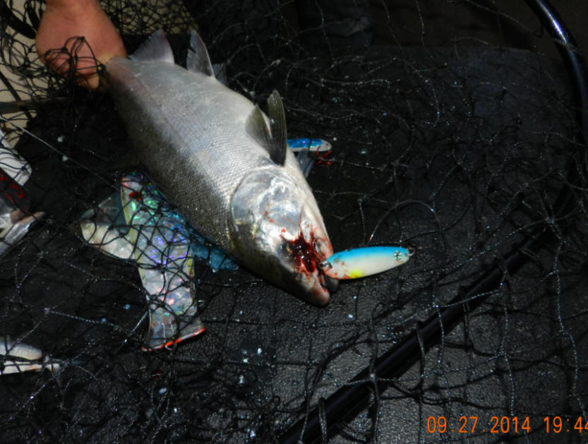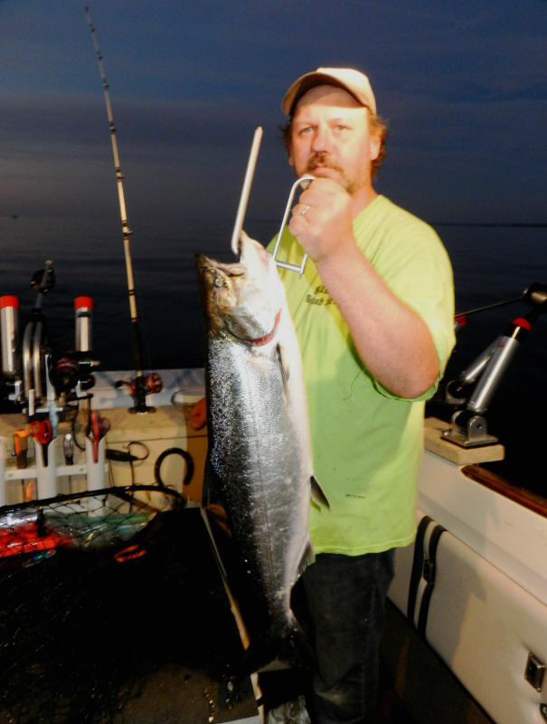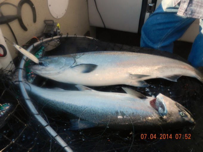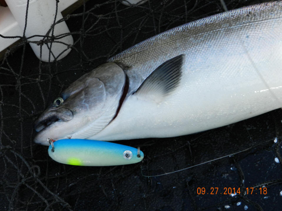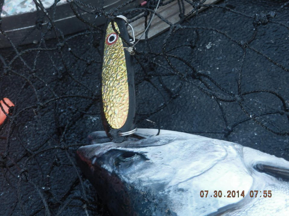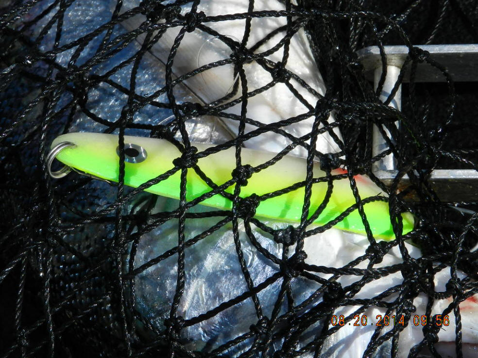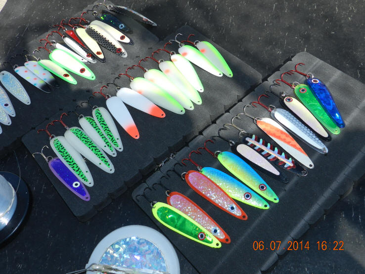 V3.5 TH 4.0 first time in the water on 7/4/14 we hit a double header around 8am. So, I knew right away we were onto a design that showed great promise. Big deal about a double header? ...not really. But in this case speed was 2.5 on the first hit and 1.3 on a dead slow-whoa troll while fighting the first King on a diver. Then, rigger went off while we were barely moving for trolling speed. The goal of having a spoon that works in a sweet spot from 3.0 mph to, at, and below 1.5 mph was verified and was on the right track in the early development stage. This was an alpha epiphany for yours truly! Performance on new Salmon Buster™ Lexan Spoons are off the chart when it comes to slower trolling speeds. Lexan, or plastic used is same as bullet proof glass and has a clear leg up in this area. Brass, the traditional choice in spoons in about a .030 thickness. Brass weighs 4 times as much as plastic, but my spoons are over twice as thick. End result is my spoons are about weight half as much. Salmon Buster spoons DO NOT stall out when you slow down to fight a fish, or allow traffic to clear. Having a spoon that works at slow, medium, and fast trolling speeds is one helluva a tremendous bonus. Especially, when the fish go deep when faster trolling speeds are totally out of the question. Due an exponentially increasing angle, or rigger wire carry back, or blowback the deeper you send the riggers down. Ground Zero Since July of 2003, my only method to fish was pulling meat. Although, I ran a lot of spoons when I was a charter skipper (1983 thru 2003) this was like going to another galaxy in 2014. OK, I had no problem remembering what used to work, but that was back then, not now? Coming up with color patterns, or selections was a blank slate. This led to old favorites like the Yellowtail and Bluetail proving their worth again. Along with more new current colors in my flasher/meat rig lineup, being Black Mamba, Krystal Killer, and SUV that let light transition thru the body of the spoon. Something that NEVER can be done with traditional solid metal bodied spoons! Next to conquer was preferred speed and having a spoon that would entice fish to hit from 1.2 to 3.0 mph. Speed is always a perplexing issue, but found 2.0 to 2.6 is where we got most of our bites and some between 3.0 to 4.0. Speed means underwater signature and how much water is being displaced, causing a fish's lateral line to become involved in the attack and feeding mode. My new spoons as proven in the videos move a lot of water by darting, diving in a constant ever changing more lifelike direction. The 4.0 and 4.65 have their own unique action so unlike ANY regular metal spoon that just go straight and just wobble. Fished with my home built 3D printed spoons from May into October 2014. There were various sizes and shapes tested. Version 5 is what went into production. The good news is the V5 4.65 is that it got bit 100' down and the V5 4.0 took fish at 90' down in what's normally attractor territory. So, it's a given this spoon displaces enough water to have a large underwater signature no matter what the depth is. Underwater signature is a fancy way to describe the appeal to the mega-sensitive lateral line on fish, used to home in on prey, or their next meal. Reverse Osmosis This is important when I proved spoon colors can be transferred to my line of flashers and meat rigs™ and work with equal success! Transmutated cloned the prototype spoon colors of Manistee Mojo and Icy Blue patterns into flasher/meat rig™ combos. Mojo is SUV tape on top, over a black base with a sliver, hyper holo belly. Both of these spoon colors were responsible for P15's first double header on 7/4/14. On 8/8/14 these to transplanted spoons colors to flashers and meat rigs™ proved their worth on 8/8/14 catching both Kings and Steelhead! This is a big deal for the occasional fishermen that fixes the age-old difficult issue of what colors to run. If you have a favorite, or hot flasher/meat rig color combo? ...the exact clone in a spoon choice is a total no brainer. Proven Colors This is another world first! No attractor manufacturer has ever cloned their colors into spoons before. Salmon Buster spoon colors echo exact matches to my flashers and Meat Rigs™ that's been tested since 2004. Glow colors in our ground breaking X-Glow that debuted in 2005, standard lure tape, and our industry leading super X-Glow. Our hyper-holo silver ice-chip tape is a cornucopia of dazzling patterns. Exclusive to my tackle lineup since 2011. Salmon Buster spoons come in a variety of colors. Fluorescent base colors of green, blue, chartreuse, and red. All have daylight light gathering properties. Much like fiber optic rifle sights, the edge of the spoon illuminates as long as there's light available. Proven super reflective, our hyper-holographic lure tape is a kaleidoscope of iridescent hues on a sliver background that must to be seen to be appreciated! This is the same lure tape that's on the top selling Super Silver Bullets and Super Mambas flashers, Meat Rigs™, and meat heads. 4.0 & 4.65 Sizes My new for 2015 spoons are available in 2 sizes. The 4.0 is the regular and the 4.65 would be considered a magnum by most. Unlike competitor's products, both sizes have the same wobble-wobble and lifelike darting action that's exclusive to my spoons. In the videos this darting action is plainly evident at speeds from 1.4 to 3.5 mph. The unique reel-action to this spoon is due to it's light weight, geometry, and patented reinforced outer perimeter. I can say "unique" with total confidence, because we shot side by side videos against several popular spoon configurations from 5 other manufacturers. Click for page 2 with YouTube action videos Click page 3 for instructional log |