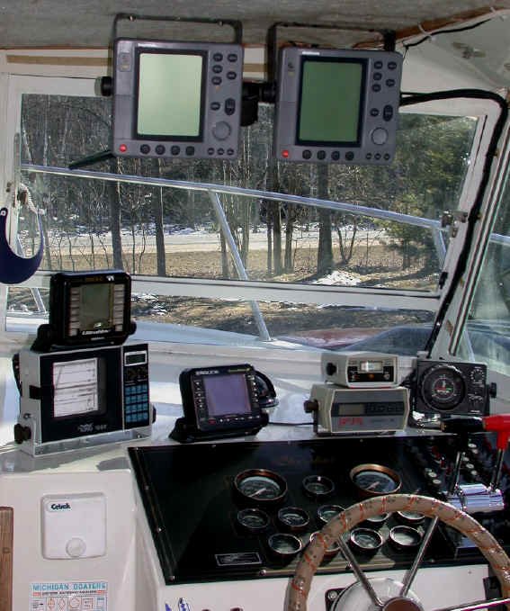 extravaganza with Capt. Mike Knudde. 11/6/01 Pulled the Cherokee yesterday afternoon and it's now being readied for new engines and a thorough cleaning before going into inside winter storage in Wellston, MI. Should be testing out the riverboat for it's maiden voyage this fall on the Big Manistee River this afternoon. I've been rebuilding the interior for the past 2 weeks, bringing it back to a "new condition." 11/5/01