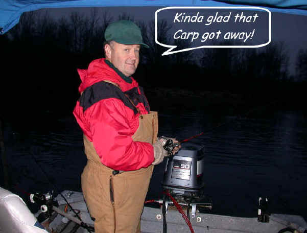 The way it looks I'll be on the big river tomorrow with Roger L. The weather looks OK, but not great. Sometimes a chilly forecast keeps the fair weather fishermen at home. "This is a good thing," as Martha Stewart would say. 11/24/03 Depending on the weather today (snow storm predicted), a trip to the big river might be on the agenda. I need to set the idle speed down, because the addition of