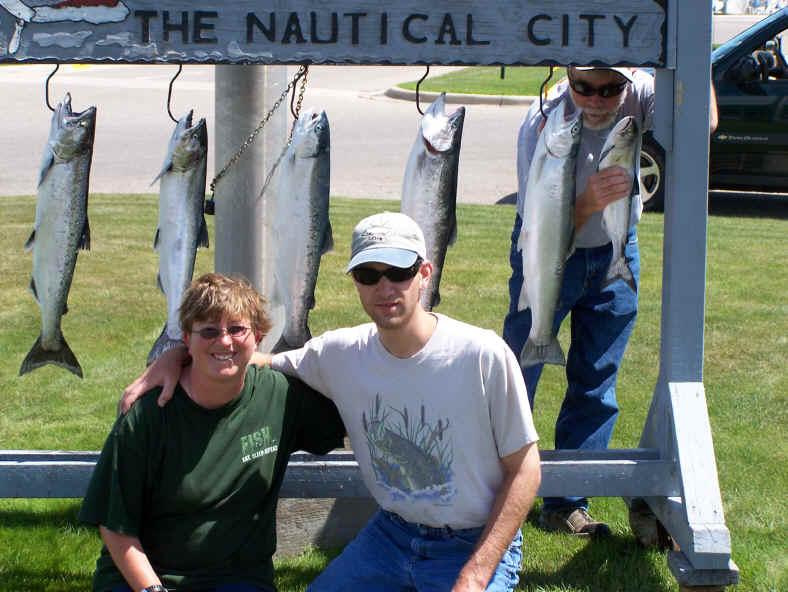 The fish were on a tear! The Kings were all over the darker colors and some colors I would never have guessed. It was black gold and black red, which may have something to do with them being so high in water column. We ended the day at noon as another storm with rain and 60 mph wind chased us off the lake. We had 11 Kings with 6 being 4 year olds, and 4 nice coho. After a mediocre June, July is off to a huge start".........Capt.