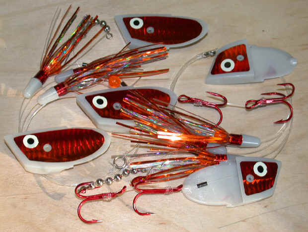 10/2/05  Today, let's give credit to the sport fishing fleet for being a heck of a lot more deadly then 20 years ago.  In 1985 most of the fleet with trailerable boats were not into pulling many attractors.  Some were decent with dodgers, but most found hitting the right dodger speed far too bewildering  Not so, with the attractors in this day and age.  They are not speed sensitive and have a much shorter learning curve.
