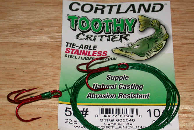 New for 2006:  I will be offering an incredible stainless steel leader material that can be tied with regular knots normally used on mono.  The stuff is called, Toothy Critter and when I have it in stock the color will be a neutral gray, rather then the green stuff in today's featured photo.  Click for a photo of leader material.