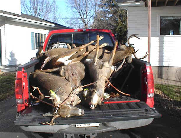 12/14/05  Today's update was gonna be about deer hunting in Wisconsin, as the a photo shows before wolves were introduced to area the where this pickup load of deer came from.  Click for a 2003 WI pickup load of deer.