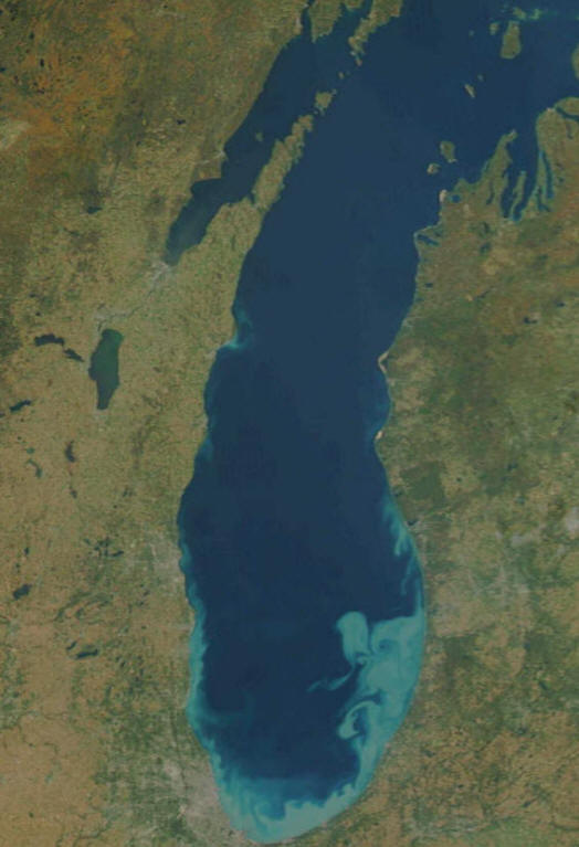 10/8/11 Glen Arbor, MI catch 10/9/11 Mark this summer like weather on the calendar, cuz more than likely this will be the last 80 degree temps Manistee, Mi sees until next year. Big cool down towards the end of next week. Fishing is reel-good out of Manistee now! 10/8/11 Website member, Mark T brought the current Lk. MI cloudy water issues to my attention on our message board. Southern ports like St. Joe and Saugatuck are plagued with a lots of churned up water. This off-colored water will grab more heat from the sun and promote plankton growth keeping the biomass healthy. Click Lk. MI from space