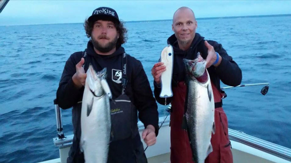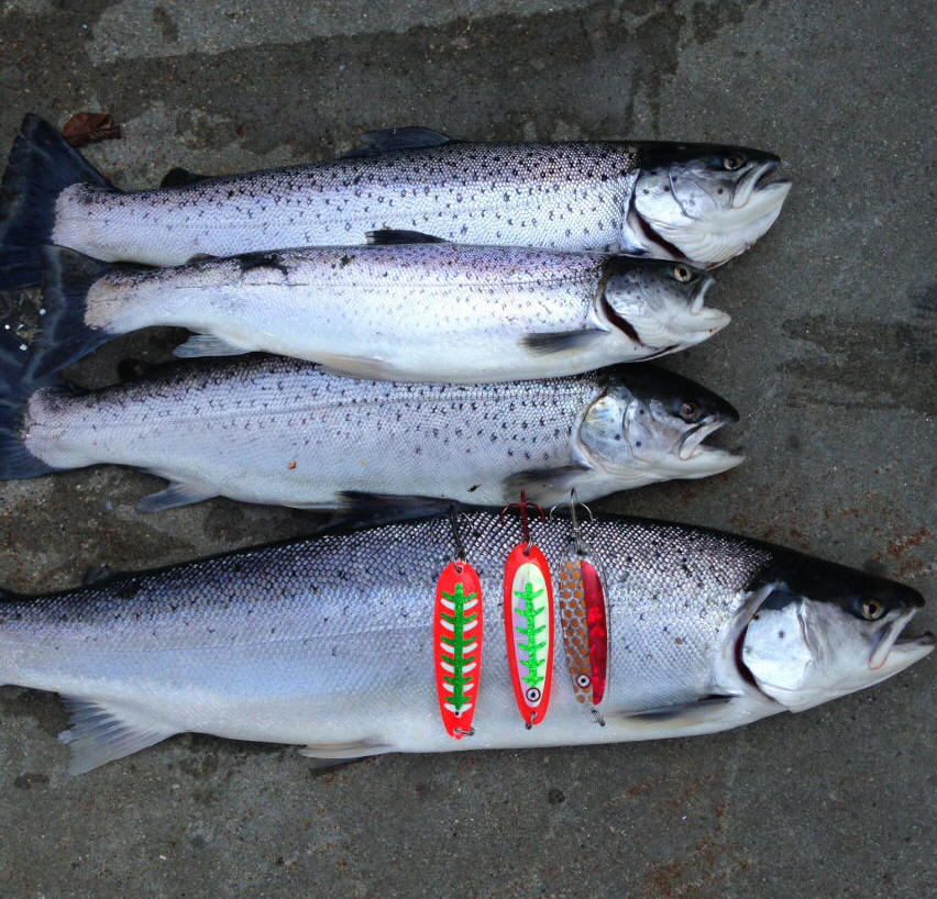 Salmon Buster spoons fished higher up in the water column."