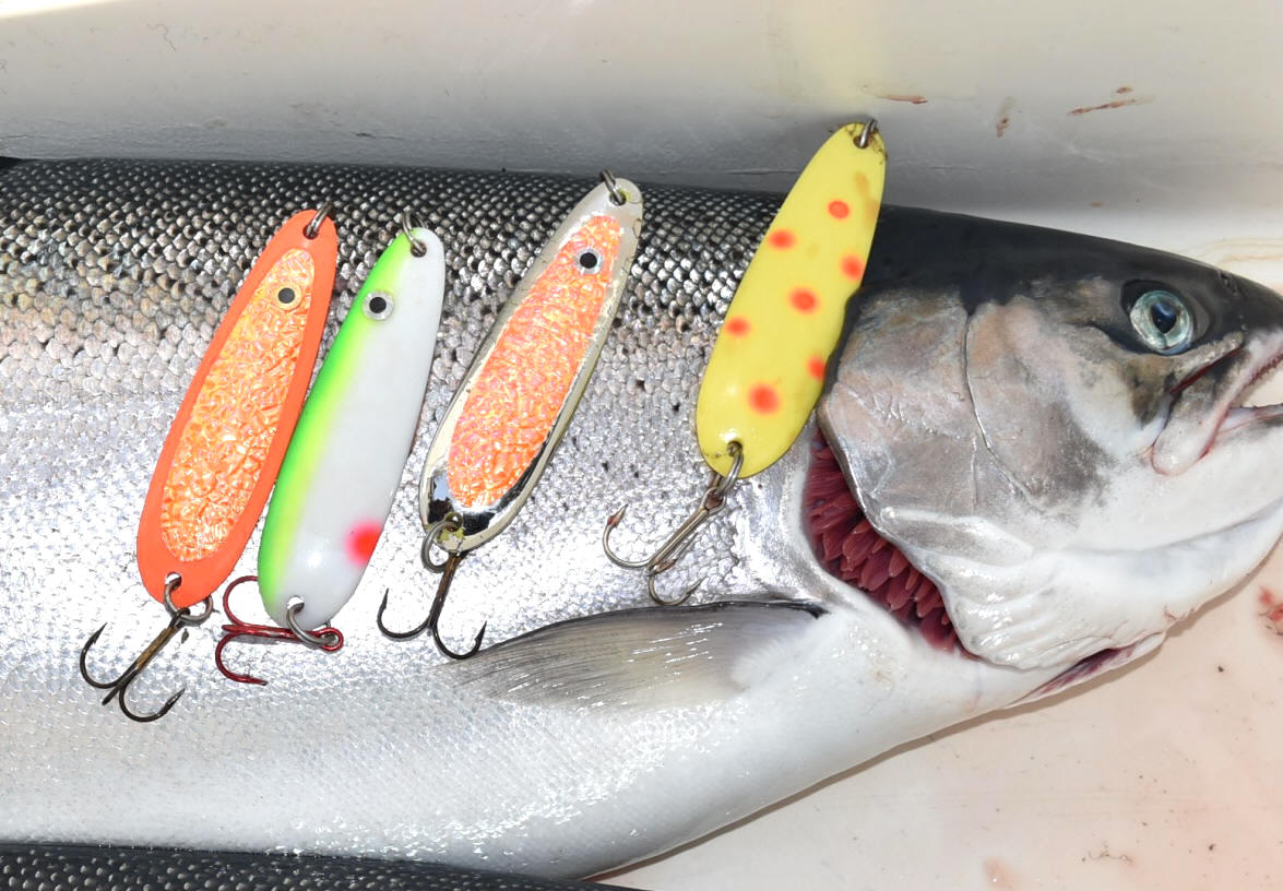 My Salmon Buster™ spoons? ...proven to have caught fish from 1.2 to well over 3 mph and in one instance a Steelhead at a bunch over 4 mph.  So, with a wide speed range, it no wonder why spoons are probably at the top of the list.