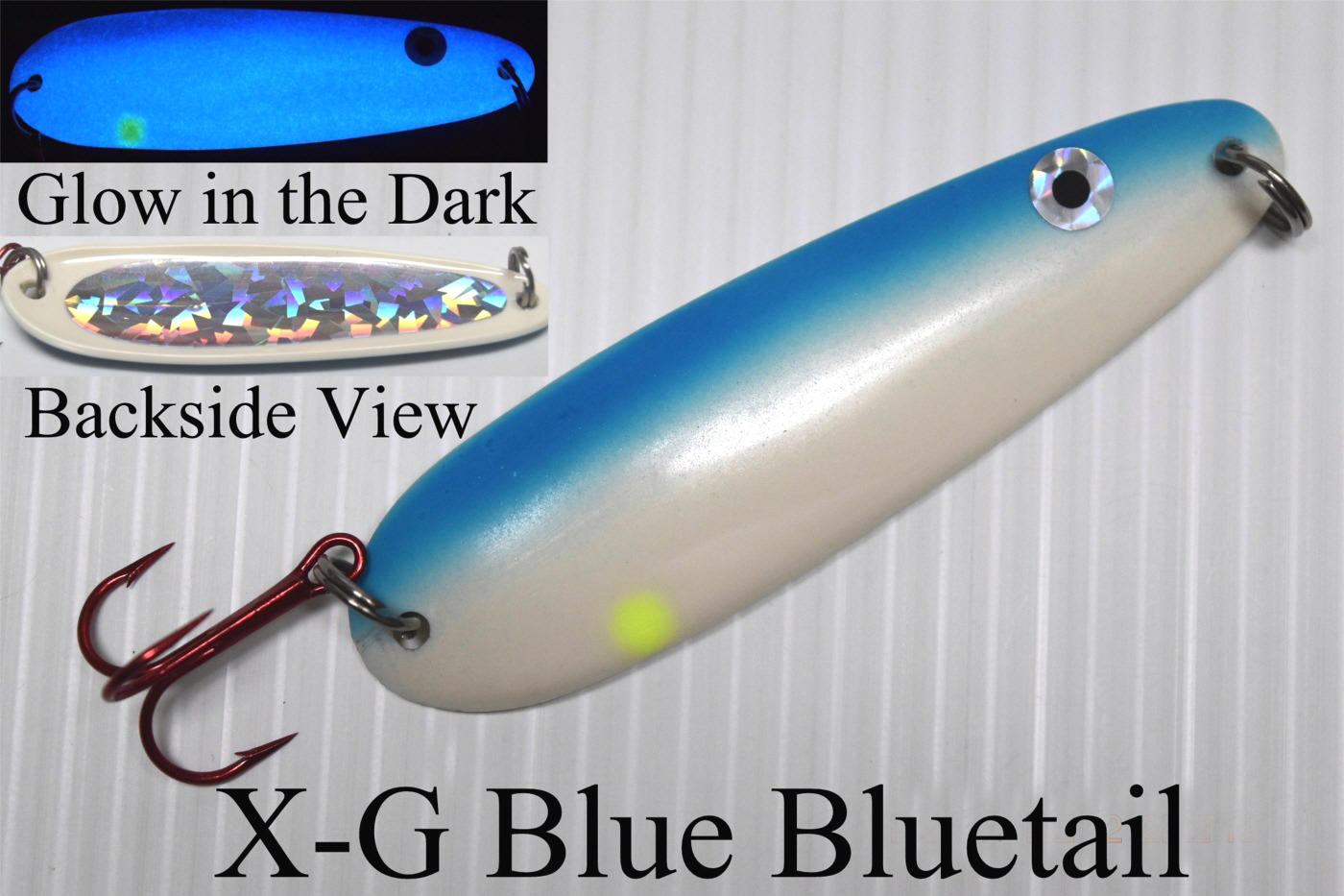 12/26/16  New 2017 XGB (xtended-glo blue) meat heads are revealed today.  This addition is a matchup to what's available in my Salmon Buster™ spoons.