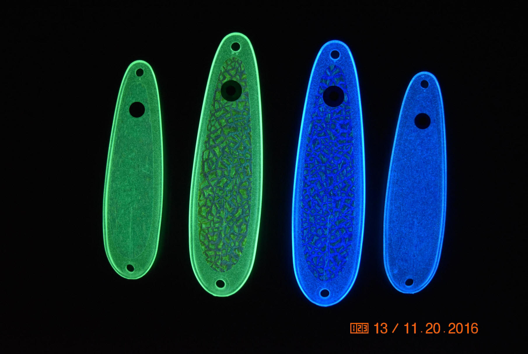 This the time of the year I begin to look at what were my major achievements in 2016.  New blue glow spoons ranks high.  Developing the daytime pearl appearing into blue glow in the dark took a lot of time before it was acceptable. Click new blue glow