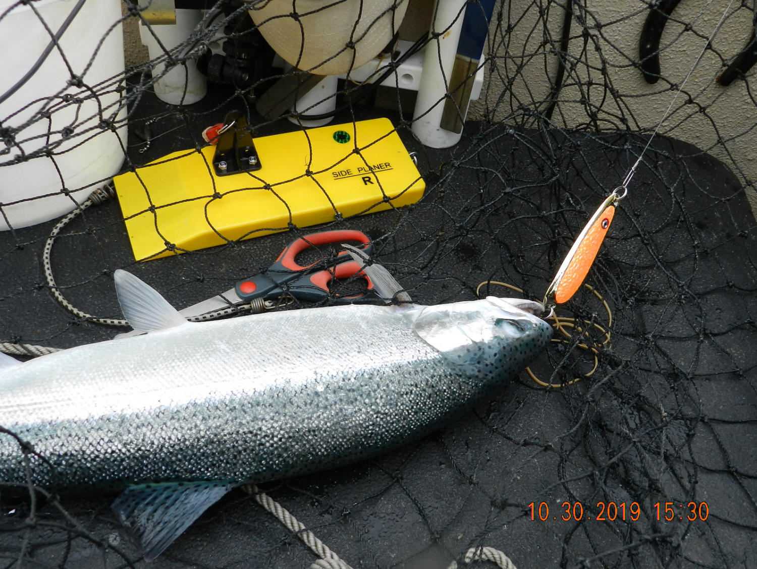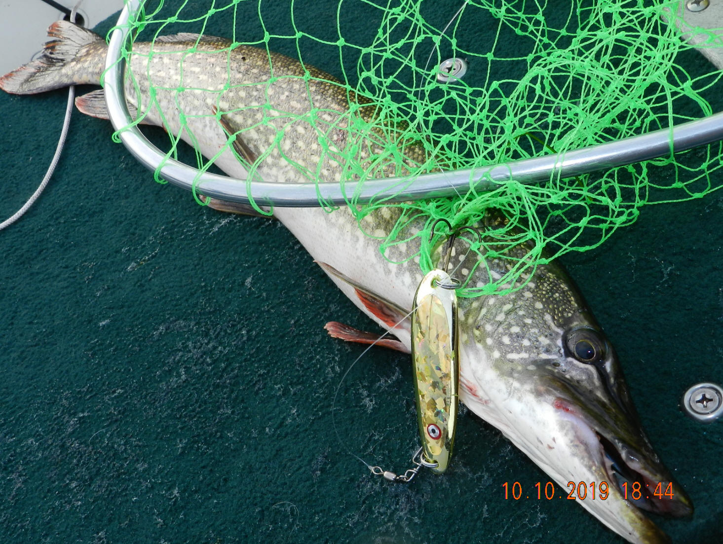 10/11/19  Scratched another specie off the list our Salmon Buster™ spoons we've caught.  Took a decent Northern Pike of the Gold Bullet SB 4.0 50' back with a 6 oz. Bomb weight down about 10' over 20' of water.  This fish hit like a ton of bricks & put up a dandy scrap.