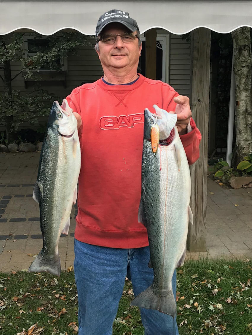 12/11/19  Been thinking about my best fishing trips in 2019.  1st was Rogers City, MI on Lk. Huron.  Had a huge amount of local support and the chance to meet Julie, the MDNR creel census taker I've spoken with, almost since the inception of this website back in the early i2ks.   Kings we caught there were a tremendous bonus.  Fishing off Lk. Huron's Adams Point and the Ocqueoc River were always on my check list.