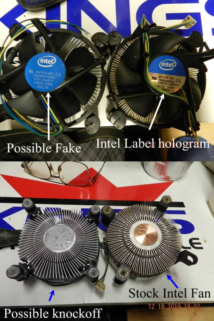 Murphy's Law again when my original computer CPU fan was acting up.  Purchased a Intel fan from Amazon that was noisy & inconsistent.  Checked it against the original/stock fan.  Less aluminum cooling fins in the Amazon replacement in a side by side check.  Logo was off too.  So, got a refund, bought another CPU fan that works great.