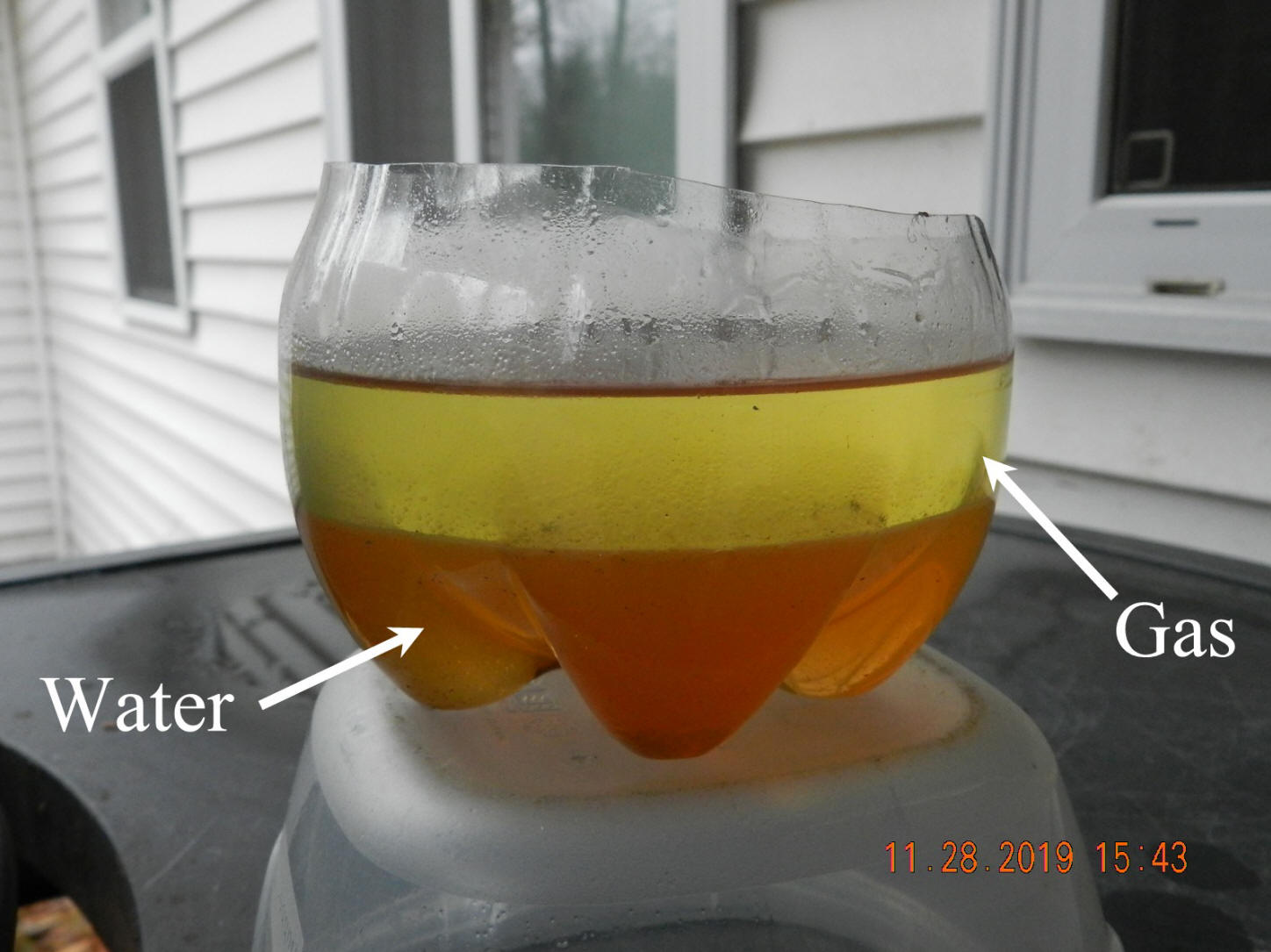 12/9/19  Today's featured photo is the contents of the water separating fuel filter I recently changed.  My boat was made in later 1970s about the time corn based ethanol was being developed that grew into a government mandate.  Water in the gas was a bigger problem back than.  Ethanol mixes with water, gas does not.