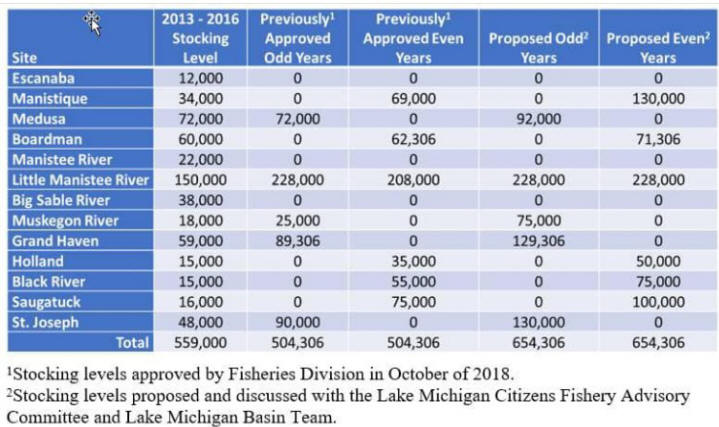12/6/19  If today's update about the bright outlook from Wisconsin DNR Fisheries don't open your eyes to the lackluster performance of the Dexter regime at the Michigan DNR Fisheries Division, nothing will!  Click WI DNR stocking projections to 2022