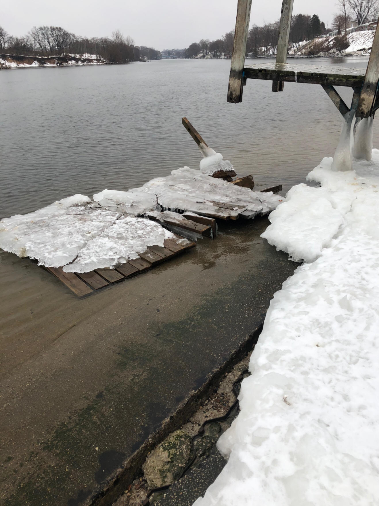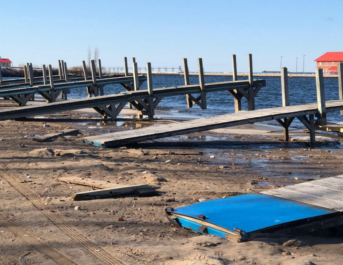 3/6/20  Spoke about Wayne J. yesterday and without asking emailed us today's featured photo.  The harbor and ramp is free from ice from what I see.  It remains to been seen how much floatie ice there on Lk. MI outside the pier heads. Click 3/4/20 harbor pic