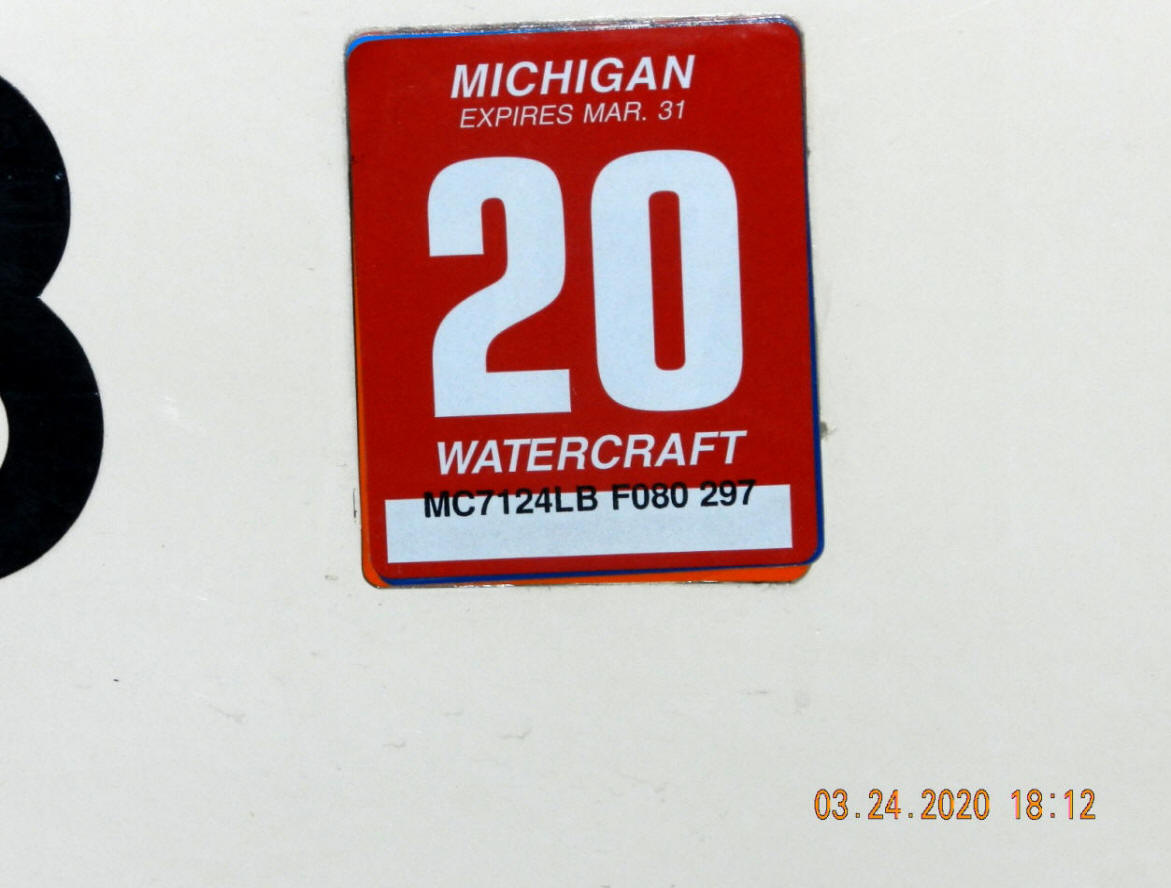 3/24/20  Boat registration alert that expires on the end of this month.  This is easy to overlook, because we only have to do it every 3 years.  Click MI boat sticker
