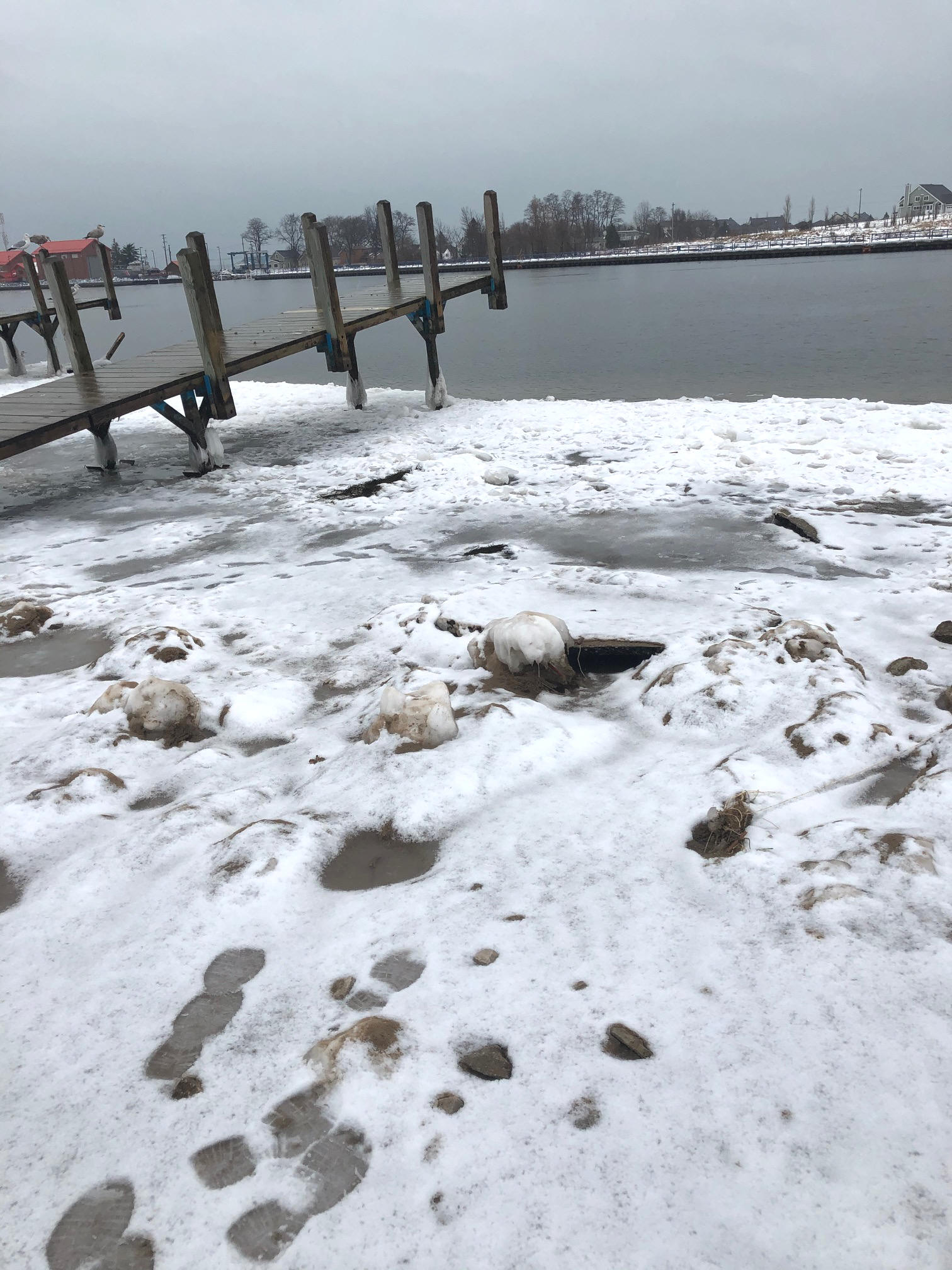 Moderate temperatures is the reel-story from Manistee, MI.  Above freezing temps has has kept what little ice there is unsafe.  Lakes I've drove by close to home look treacherous.  Still open water on Manistee Lake.