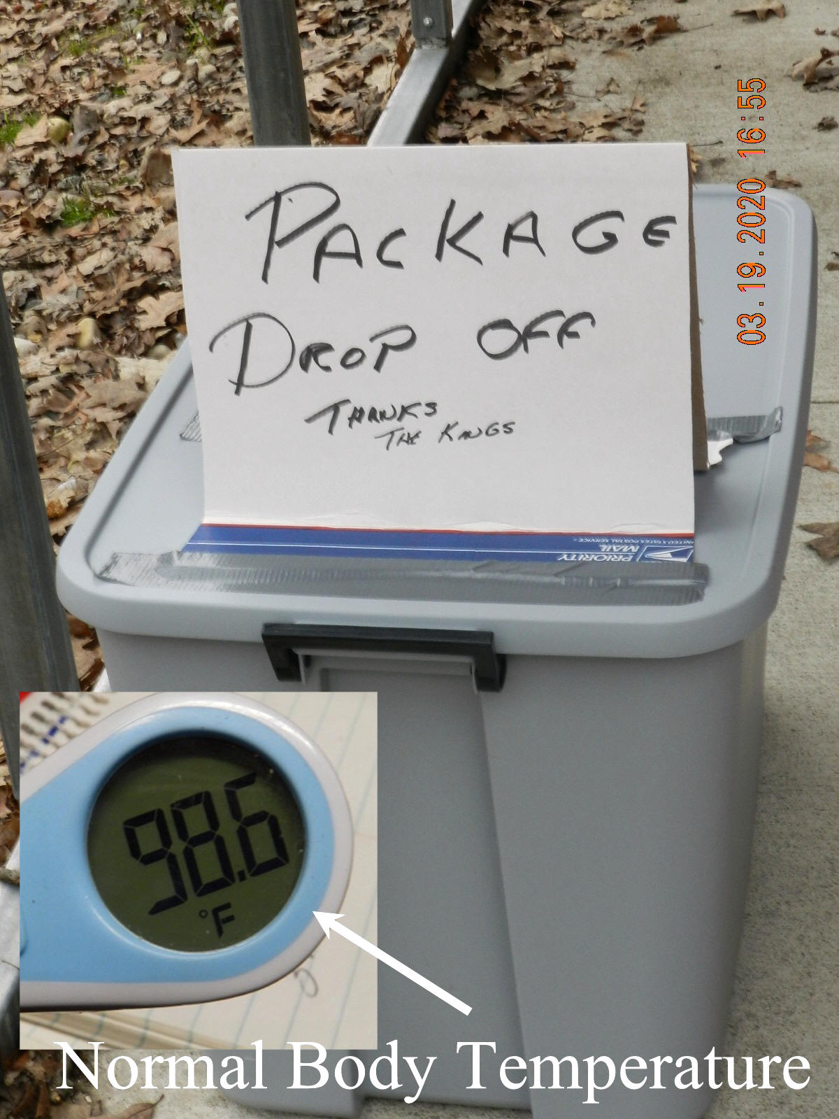 3/21/20  Posted a photo of our drop box for USPS. UPS and FedEx deliveries.  This eliminates face to face, by having the drivers come inside to leave packages.  This keeps both sides safer from the extremely virulent COVID-19 virus the killed 793 people in Italy during a single day (yesterday).  So, this virus is lethal. Click for drop box