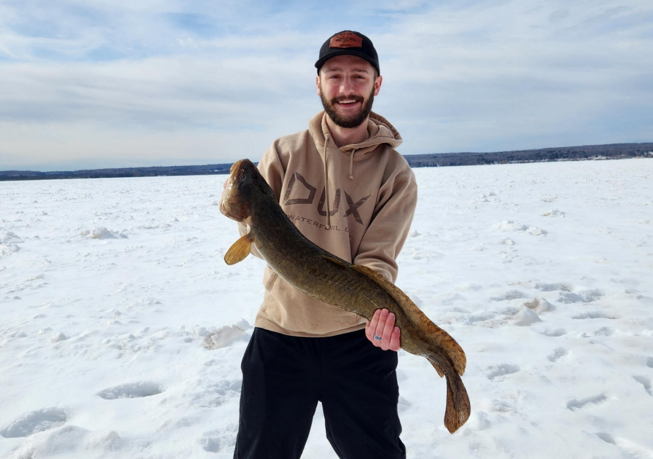 3/14/23  Burbot are an oddball species that don't hit a trolled lure very often.  In my 50 some years of fishing the Great Lakes, may be boxed around 10.  They curl up in the box like a snake and are said to be good eating.  Know from filleting a few of them, there's not much meat, only good piece is the tail section behind the rib cage. Click for Burbot