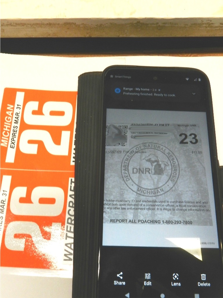 3/27/23  Admittedly, I'm behind when it comes to smart phones.  But that don't mean I can't learn useful functions of this tool when it comes to fishing.  A quick photo will store your fishing license pronto.  Same goers for your boat registration.  Apps cover everything from wind to MDNR's app for regulations and purchasing. Click DNR app