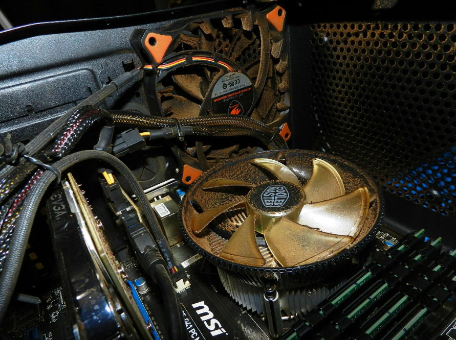 3/3/23  Before picture of crud inside my computer shows the dust and dirt that can accumulate over a couple of years.  Blown out with compressed air it's squeaky clean on the inside.  Unfortunately, the after photo was too blurry to use. Click computer crud