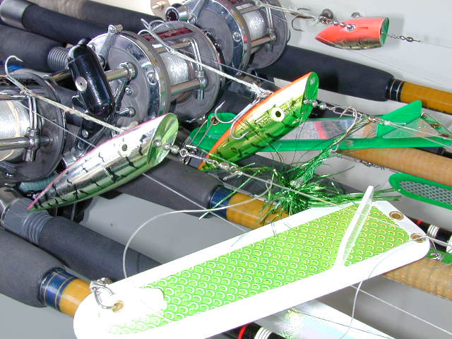 This is not that time to run light lines and light rods. I put the Ugly Stiks away and run M action or heavier rigger rods. 25 pound mono is a minimum, 30 is better. Forget wire, as you don’t want it in your prop and really don’t want it in anyone else’s as well. Also, make sure your boat is ready to go, and all the gear is working properly. Just because you’re only going out just in front of the channel is not a reason to cut corners, and it’s difficult to keep things ship-shape when the big fish are taking their toll on your tackle. Buy spares in advance or be ready to look hard and pay much for the hot lures.