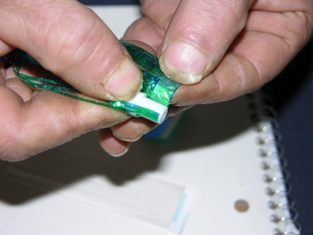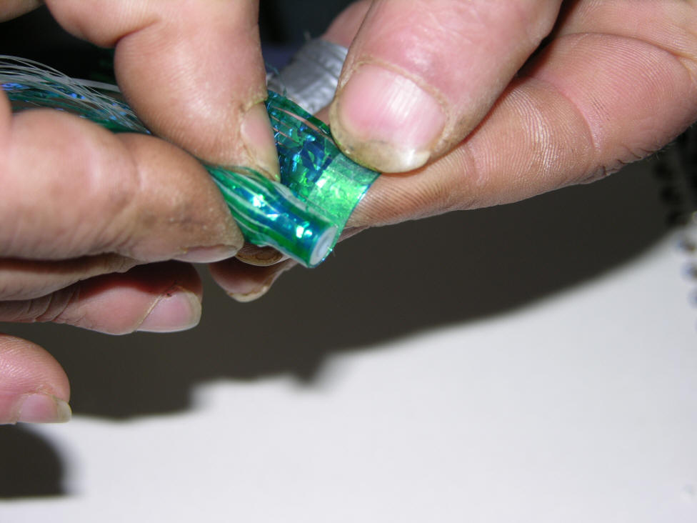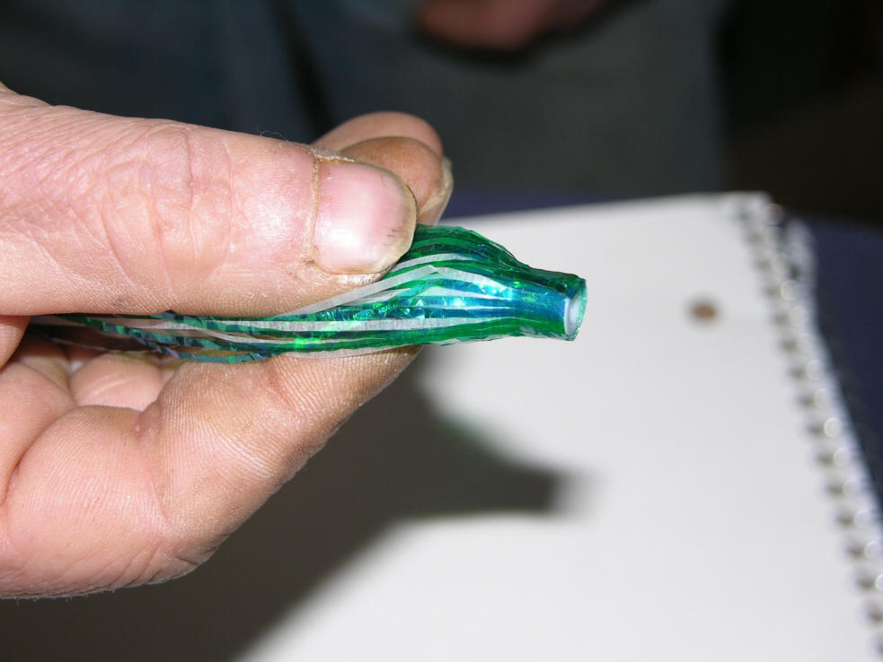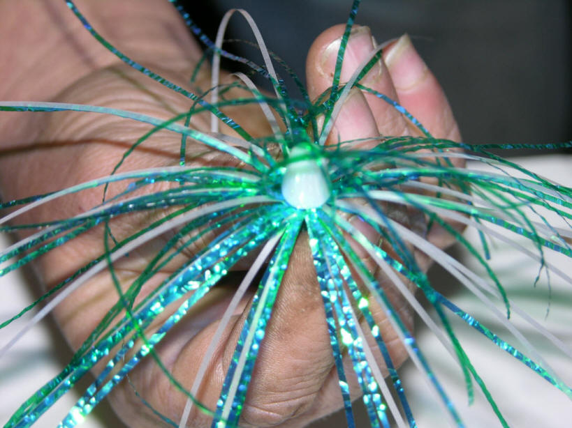 4a.  Method above is known as a reverse lay.  This causes the Mylar to actually swim/pulse with a far more lifelike presentation!  Especially, more noticeable with my BTI 10" Flashers that have a built in snap to it's roll.