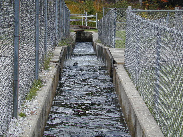 Weir Facts When I was at the weir on 9/22/01, most of the holding pens were pretty full and you can see all the fins sticking up in the photos below of the pens. I consider these Chinooks or Kings to be the smart ones, because they didn't go into my fish box. In the Fall the weir acts as a barrier to the Salmon