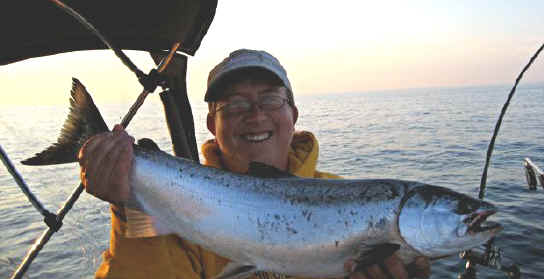 On a final note, fishing for some is for fun, just going out dropping some lines and hoping to get some fish.  For me, fishing has become a passion.  I say that, because I am always watching the weather, wind, and water temperature.  I try to take advantage of the right conditions.  The more chances I can get with the cold water and stable conditions, the better the fishing.  Finally, don’t forget to take your friends out and share the fun, especially with ones who have never fished this way. It is fun especially when a king takes out lots of line and the reel is screaming.  Taking the old salts out is really lots of fun, because we can always talk about the good old days and memories from past trips. Taking out handicapped individuals is another story in itself.  To see that great big grin from their faces when the rod bends and the fish pull, it is priceless!