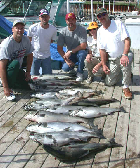 There's an ever increasing vertical pull of the line against the release mechanism, multiplied as you fish deeper. Not to mention the pull of any attractor/lure that varies with trolling speeds. When a fish first hits several factors come into play. Cannonballs are not stationary objects. They get pulled in any direction a fish decides to go before the rigger release apparatus breaks free. Then, there's the risk of line slipping thru a release, negating hooking power before the big show has began. Properly installed rubber bands lock the distance and do not slip. Plus, bands are a helluva lot easier on your line than any release. Being easier on your line leads to zero line failure & not buying costly tackle. Click for another article "how-to" install bands Black's Downrigger Releases offer an added benefit, as your cannonball hangs directly straight. Not titled up at a weird angle do to water pressure of the line cutting vertically thru a 100' feet of water. Those that hang releases on the back off the rear fin of their cannonballs might want to pay close attention to this reel-fact! Rubber Bands offer an elastic cushioning effect. Plus, a constant positive 4 pound pull with a good 18 inches of play, or stretch to keep your hook tightly stuck. This helps a hook penetration immensely. Underwater videos have recorded the full force once a Salmon begins to feel the hook go in. Just like a surface Steelhead/Rainbow on the tear, there's a lot of violent head shaking, along with body contorting spins. This is the time when the elastic stretch of 18" to 30" will keep your hooks imbedded into your next victim. Releases & bands are less mass to pull thru the water. Unencumbered by additional clips that might carry a negative underwater signature. This is a compact stealthy approach that will prove itself. Put another way, when there's hoards of fish, who cares if you lose a few hits? When times are lean? Then is its ultra important to capitalize on every opportunity! |
